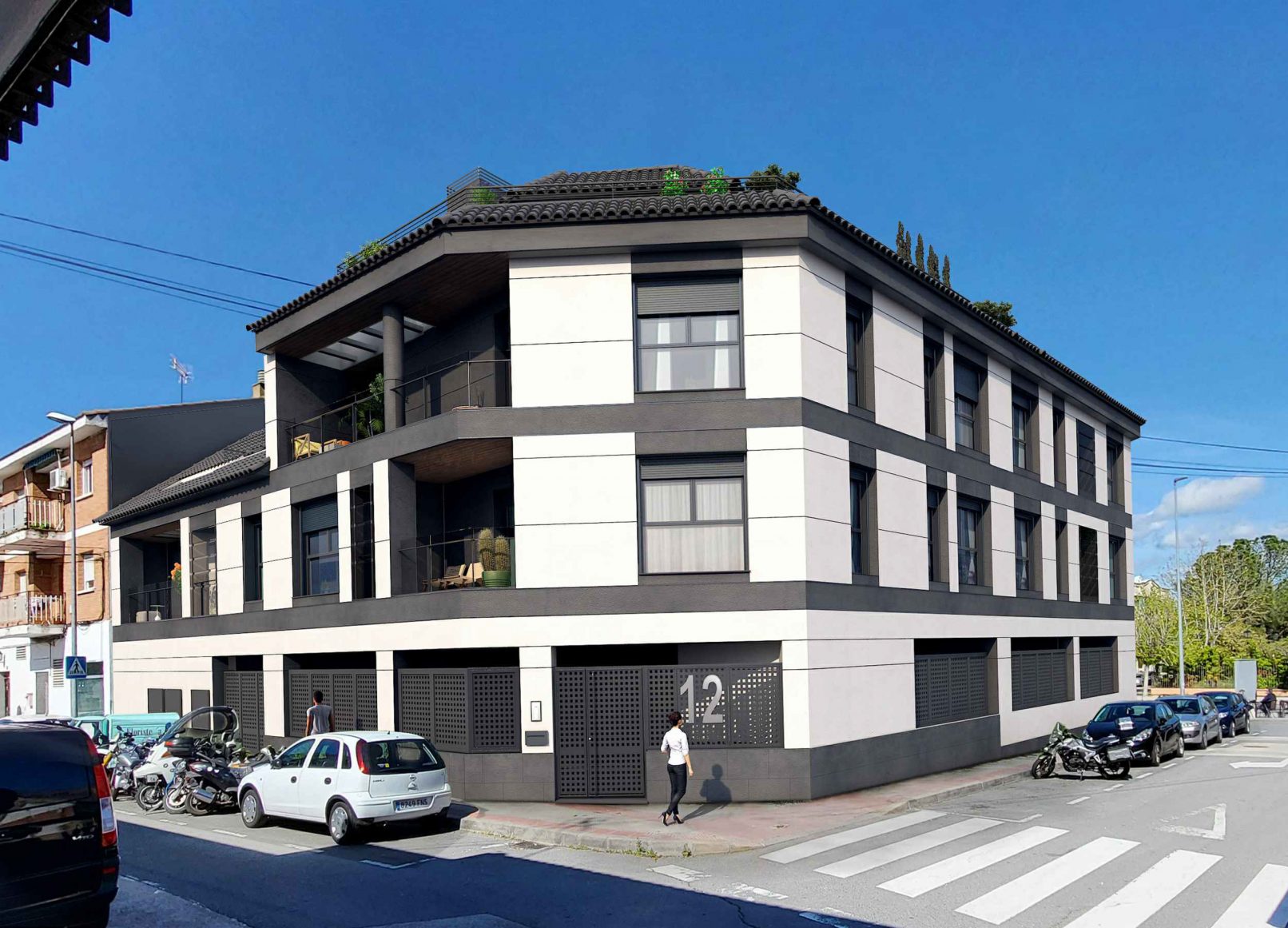 - Puerta de entrada a garaje con apertura automática con mando a distancia y dispositivo de seguridad según normativa.